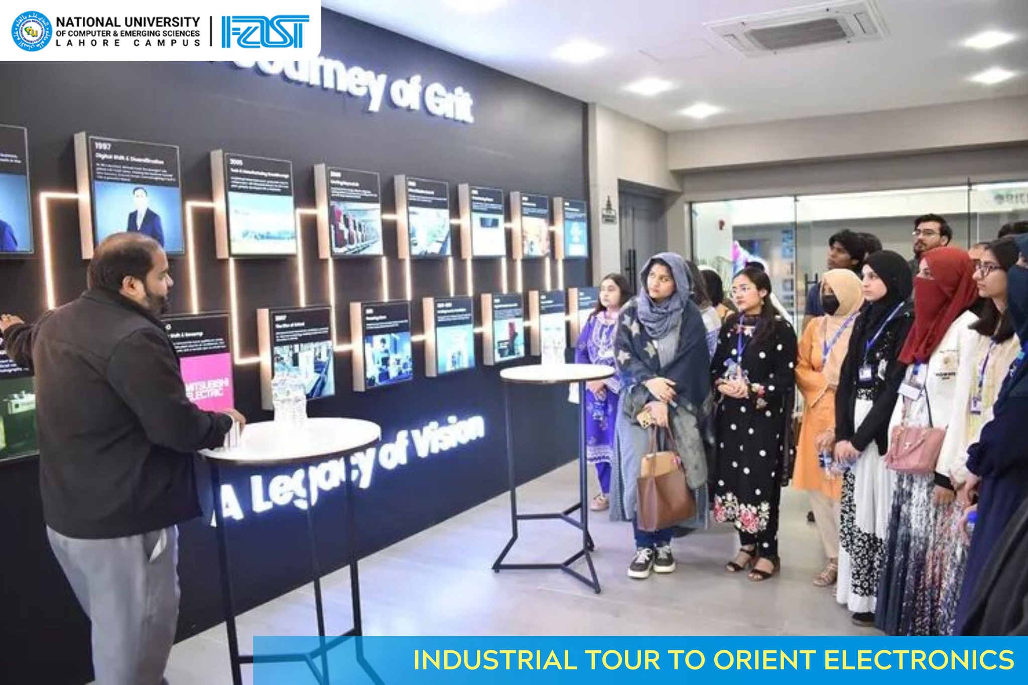 On 20th November, the Department of Electrical Engineering arranged an industrial tour to Orient Electronics as part of their NextGen Program. Students were warmly welcomed and given an insightful introduction to Orient’s journey and its rise as one of Pakistan’s leading electronics manufacturers.During the visit, students explored the production floors and observed real-time manufacturing of refrigerators, air conditioners, and microwave ovens—bridging the gap between academic learning and modern industrial practices.To make the experience interactive and memorable, the Orient team conducted a fun icebreaking activity and a quiz session, where winners received exciting goody bags. The tour proved both enriching and enjoyable, offering third-year students valuable industry exposure and a deeper understanding of electronics manufacturing.