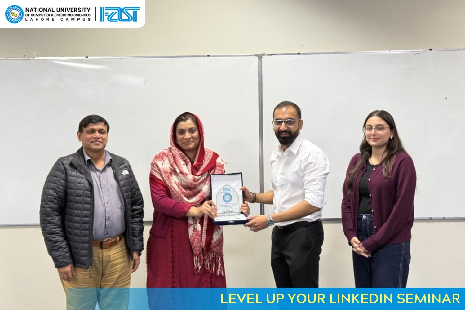 Career Counseling Society (CCS) organized an engaging seminar titled “Level Up Your LinkedIn: A Workshop on Professional Visibility” on 2nd December 2025 at FAST-NUCES Lahore Campus. The session was conducted by Mr. Ahmed Waleed, Head of Games Division at Devsinc x Tensei Games and a proud FAST alumnus.Mr. Ahmed shared practical tips on building a strong LinkedIn presence—focusing on profile clarity, consistency, and meaningful engagement. He also reflected on his journey at FAST, offering relatable insights on persistence, networking, and continuous learning. Walking students through the evolution of his own LinkedIn profile, he provided a real-world perspective on career growth and professional development.The seminar concluded with an interactive Q&A session, where students asked thoughtful questions about career choices, networking, and skill-building. Overall, it was a highly informative and motivating experience for all participants.