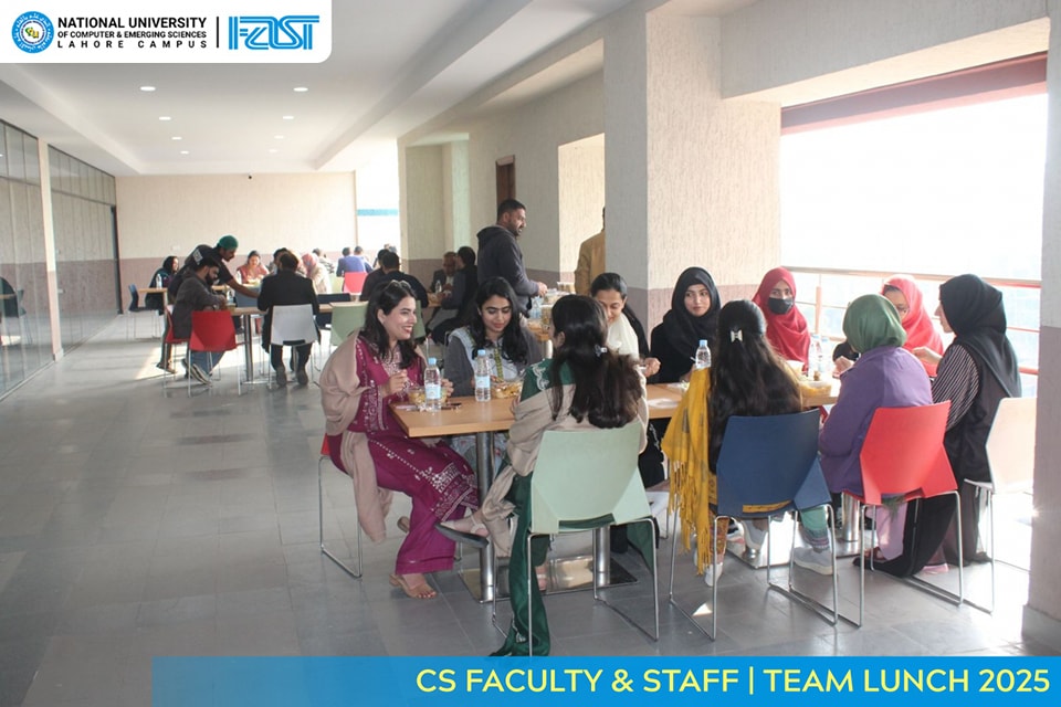 The CS Faculty & Staff at FAST-NUCES Lahore Campus came together for Team Lunch 2025, fostering camaraderie beyond classrooms and offices.Such gatherings reflect the strong culture of collaboration, mutual respect, and shared purpose that drives academic excellence and innovation within the School of Computing. Strengthening bonds off-campus ultimately strengthens our impact on-campus. At FAST-NUCES Lahore Campus, we value our people as much as our purpose — because great teams build great institutions.