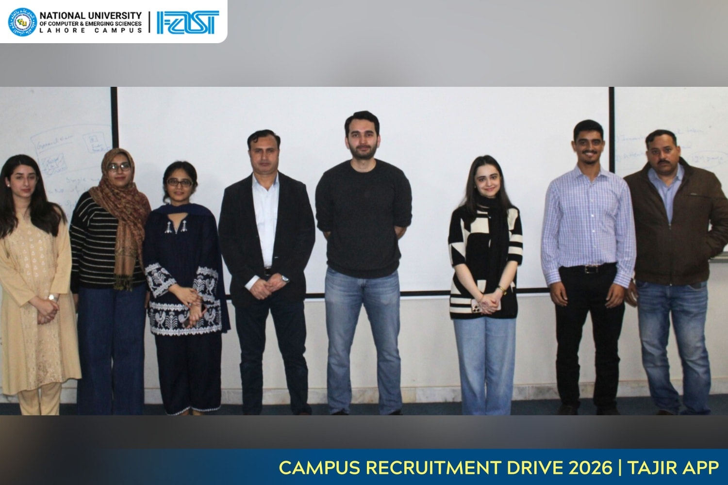FAST-NUCES Career Service Office Lahore Campus (CSO) invited Tajir App for an on-campus recruitment drive as part of their hiring process on Monday, February 16, 2026.